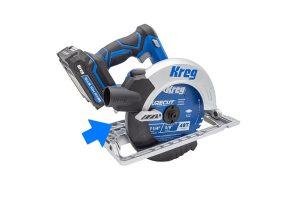 This is something too many people neglect when using a circular saw. If saw is set to cut too deep, it will be harder to control, which makes cutting straight more of a challenge. Plus, it leaves way more of the blade exposed to potential contacts than necessary. Loosen the saw’s depth lock—usually a lever near the back of the saw—and then set the cutting depth to the thickness of your material plus about 1/8″.