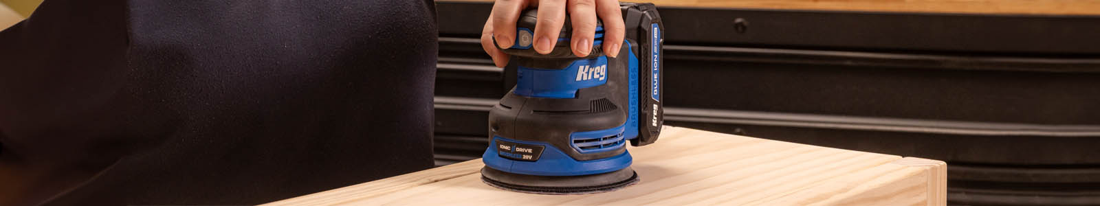 After assembling a project, joints can sometimes be a little uneven, especially if you’re gluing up panels or joining boards at corners. An orbital sander helps blend those seams to make everything flush and polished.