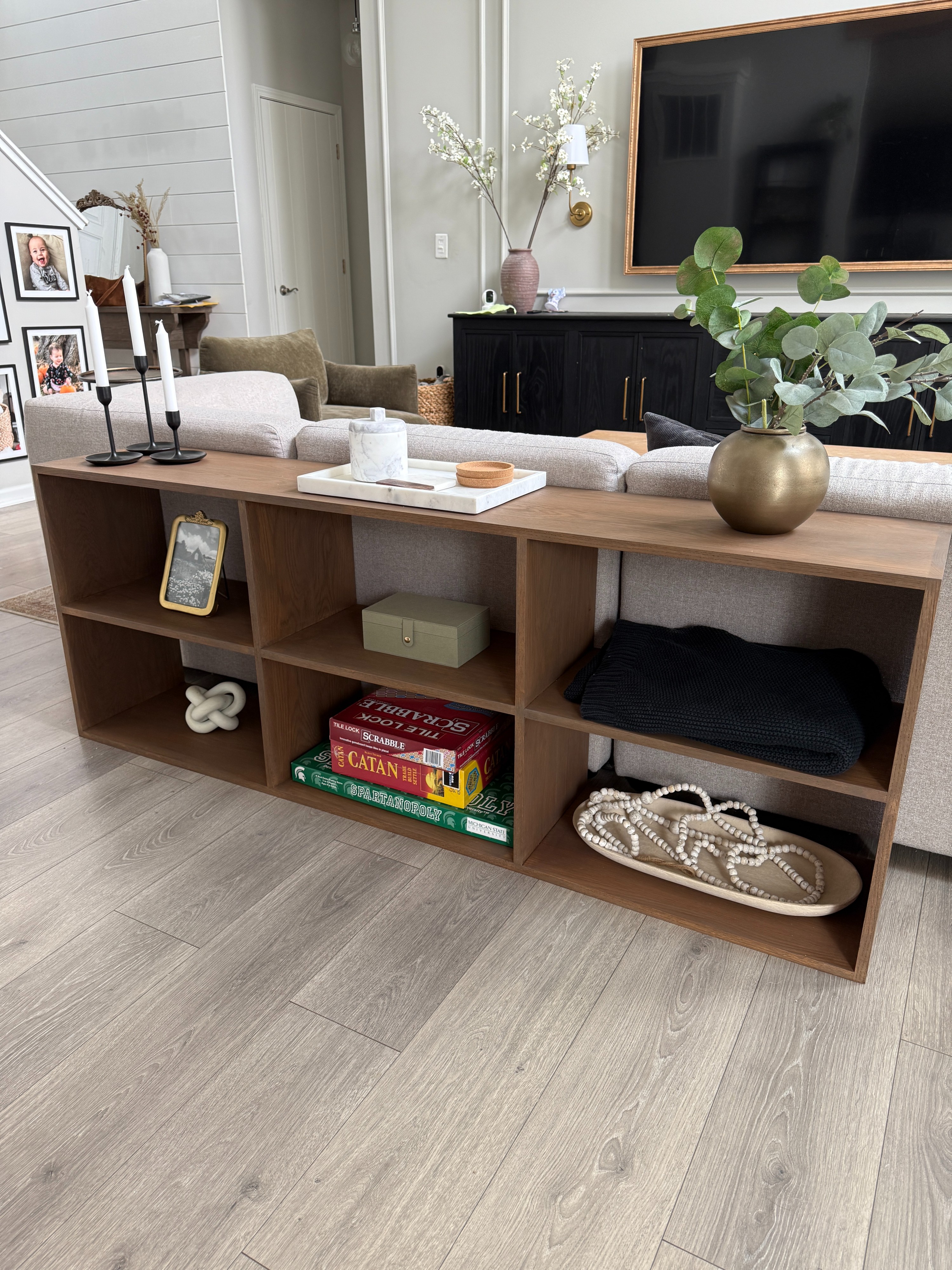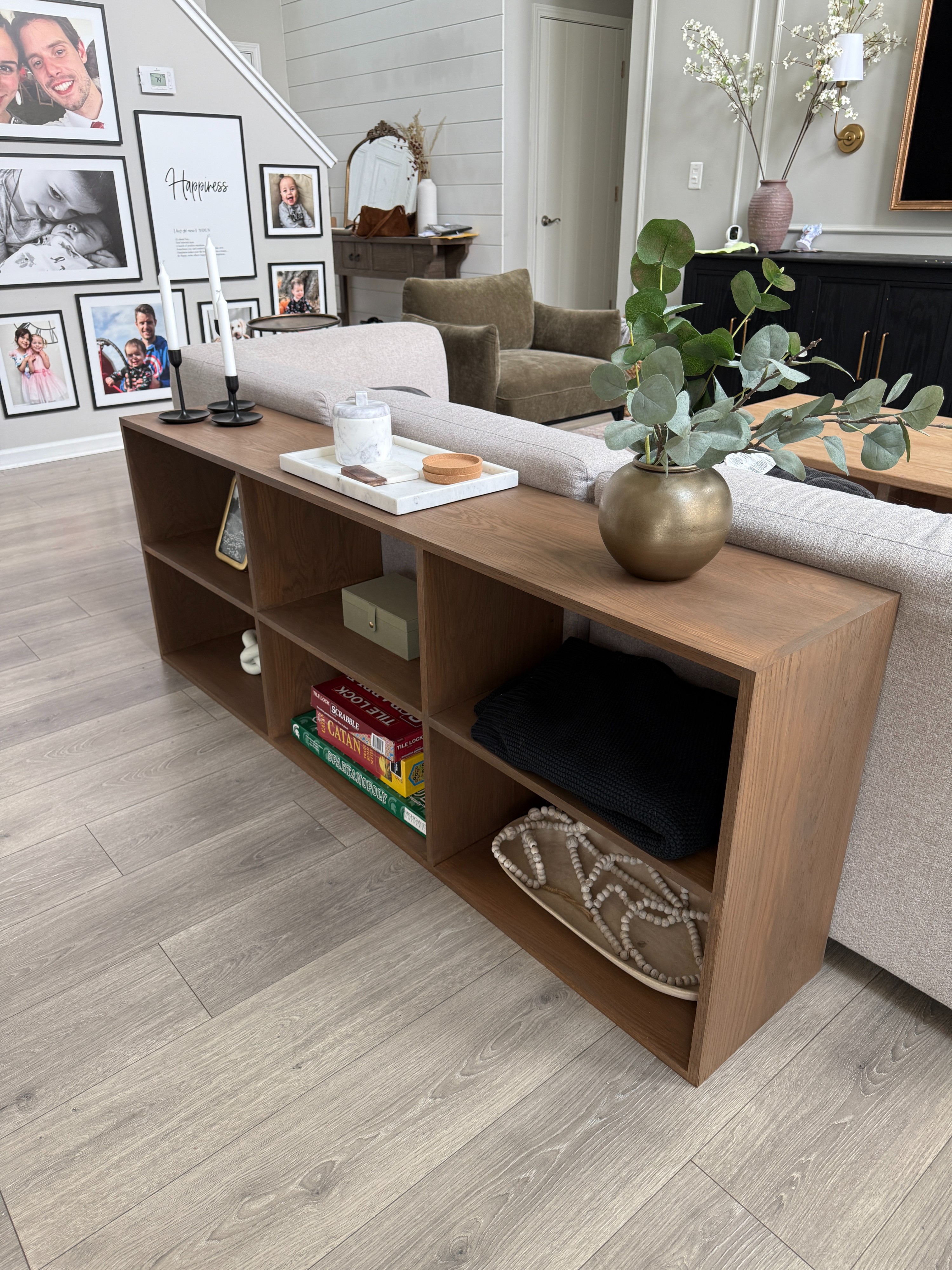 By Built by Bec DesignsBuild a sleek and low profile table that can double as a sofa table, console, or bookshelf. This easy to follow project uses basic materials and beginner techniques to create a sturdy piece that fits behind a couch, along a wall, or beneath a window. Customize the length and finish to suit your space and style.