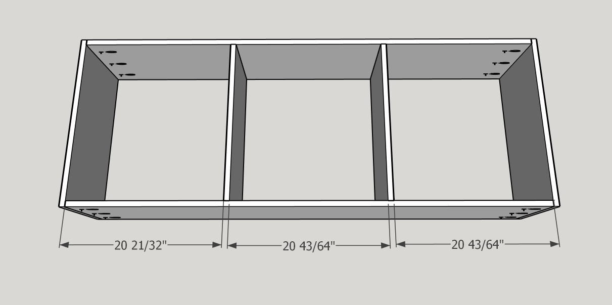 I suggest using a miter saw or a track saw.Drill pocket holes on both ends of the top and bottom as shown in the picture. The pocket hole jig should be set to 3/4" and the drill collar should be set to 3/4".