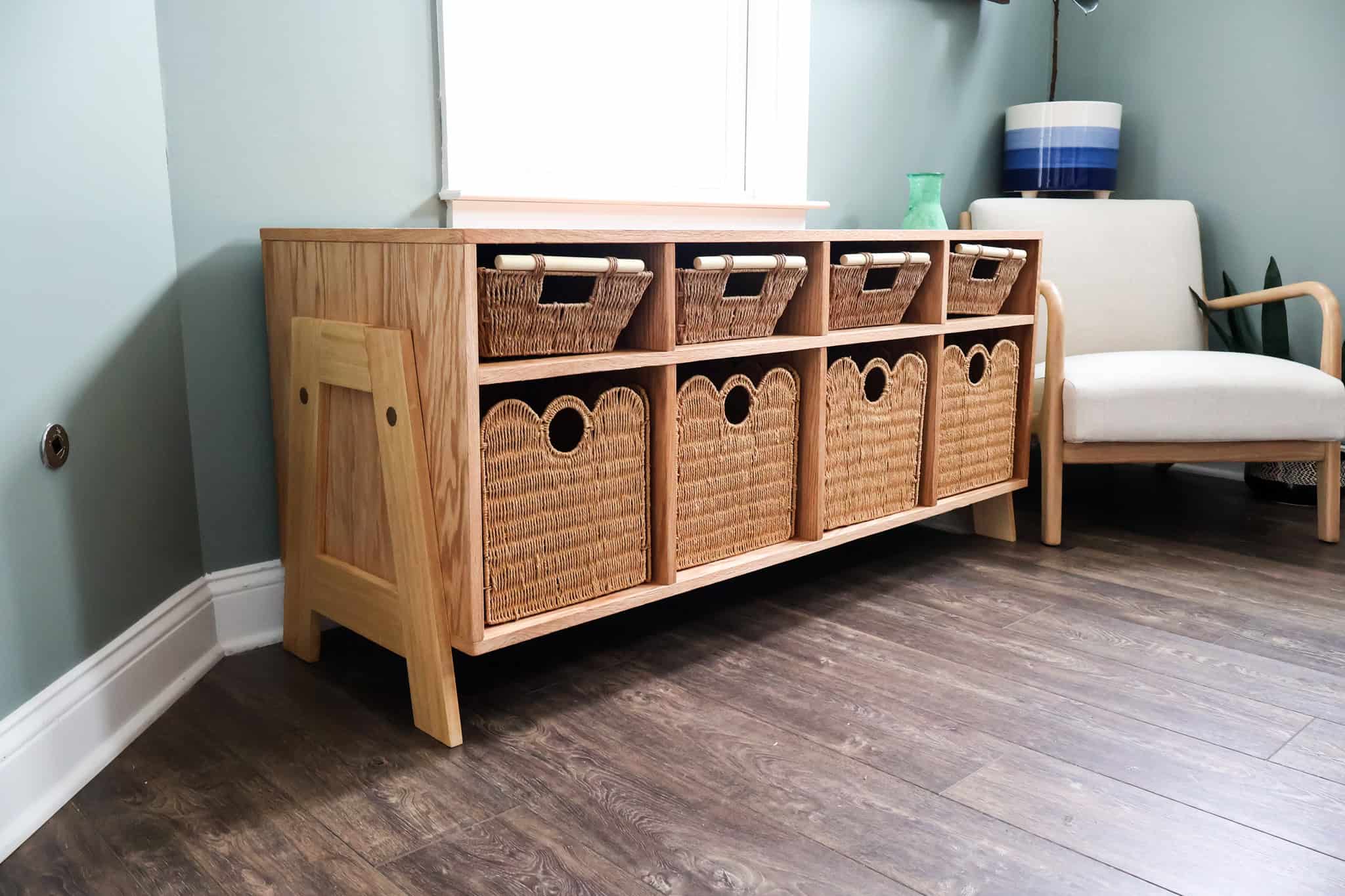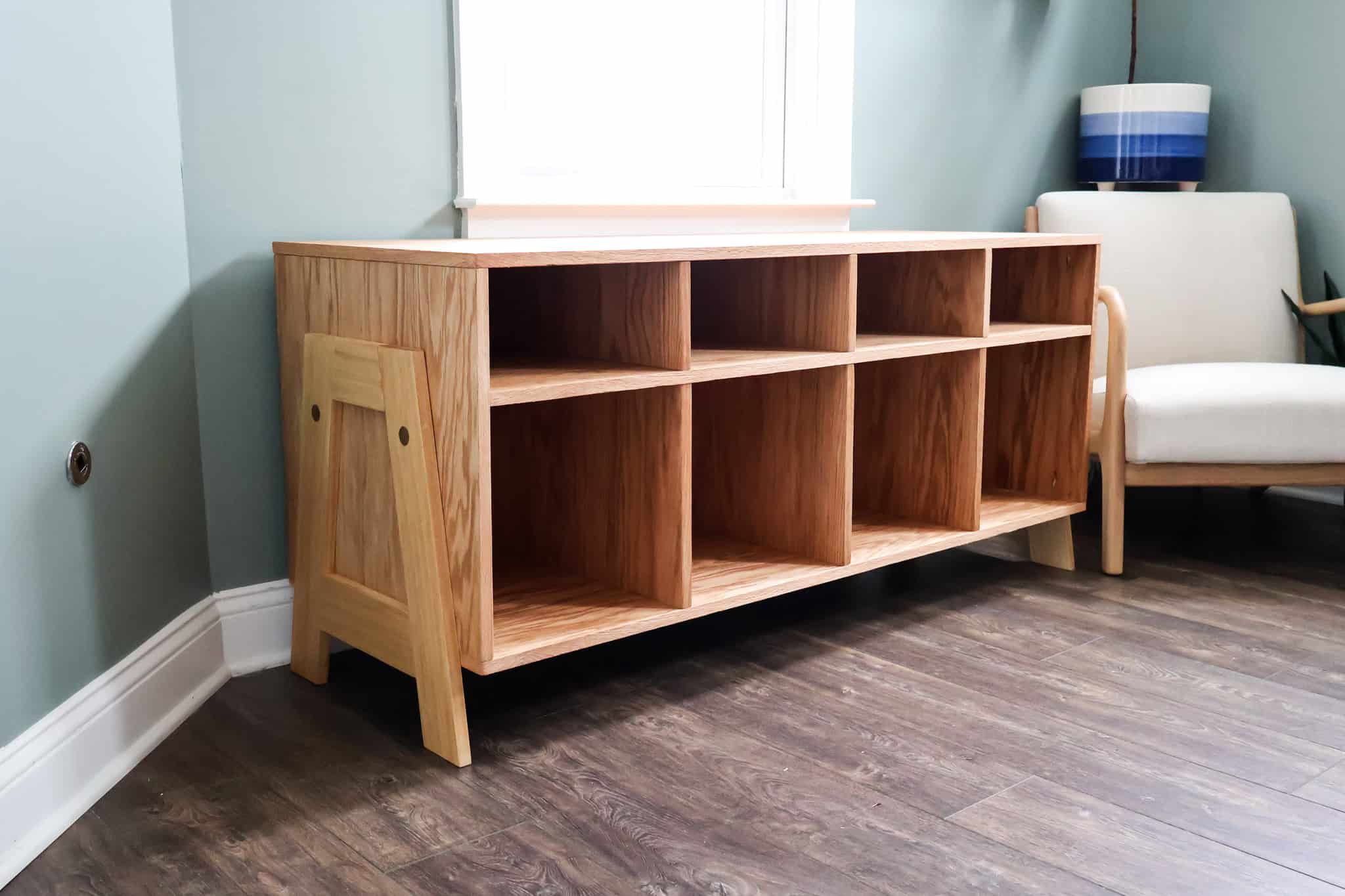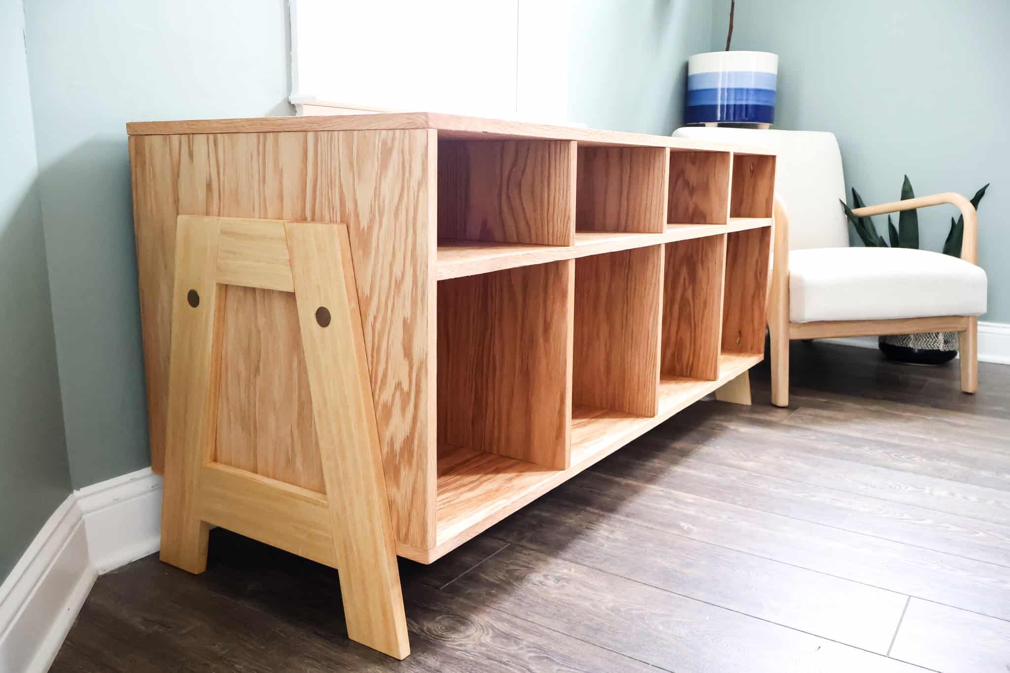 By Charleston CraftedThis storage console table is perfect for standard sized cubes as well as trays to keep miscellaneous items organized. The versatility and unique aesthetic design make this a truly custom piece!