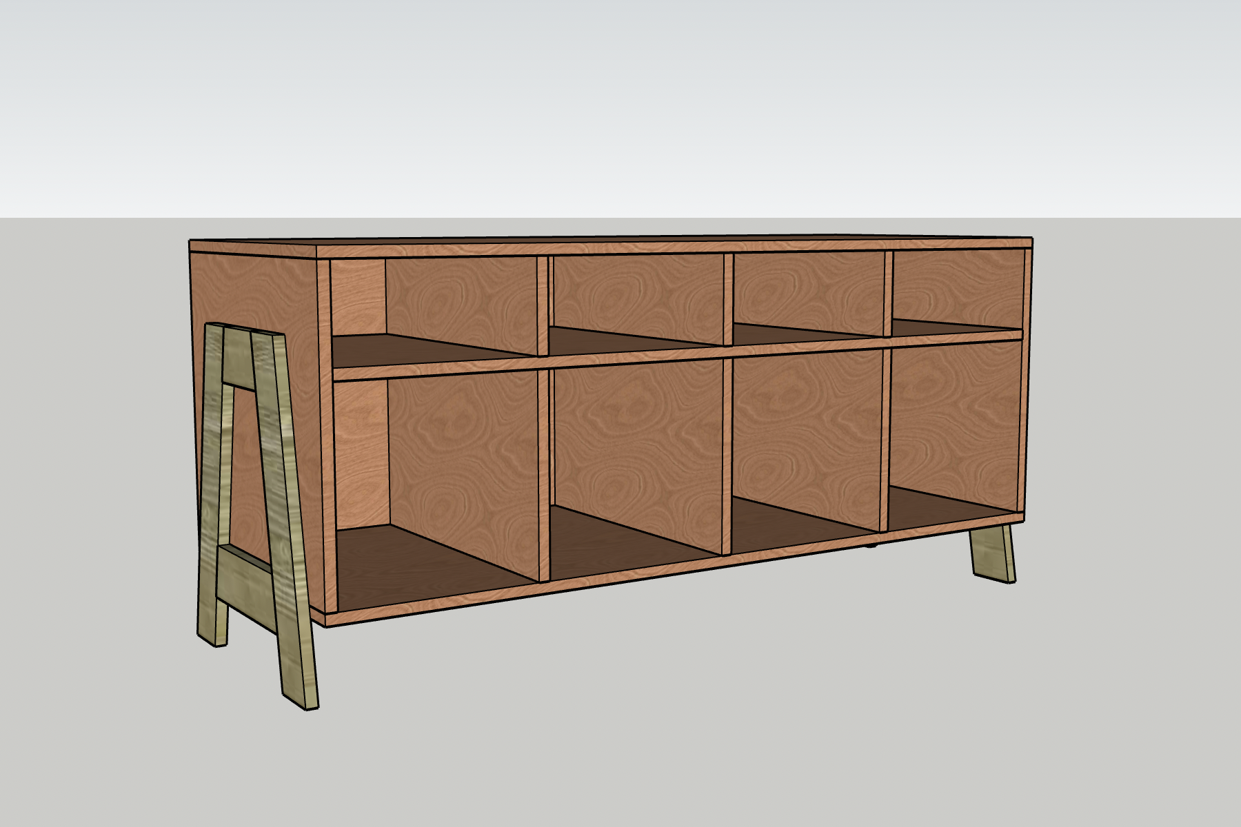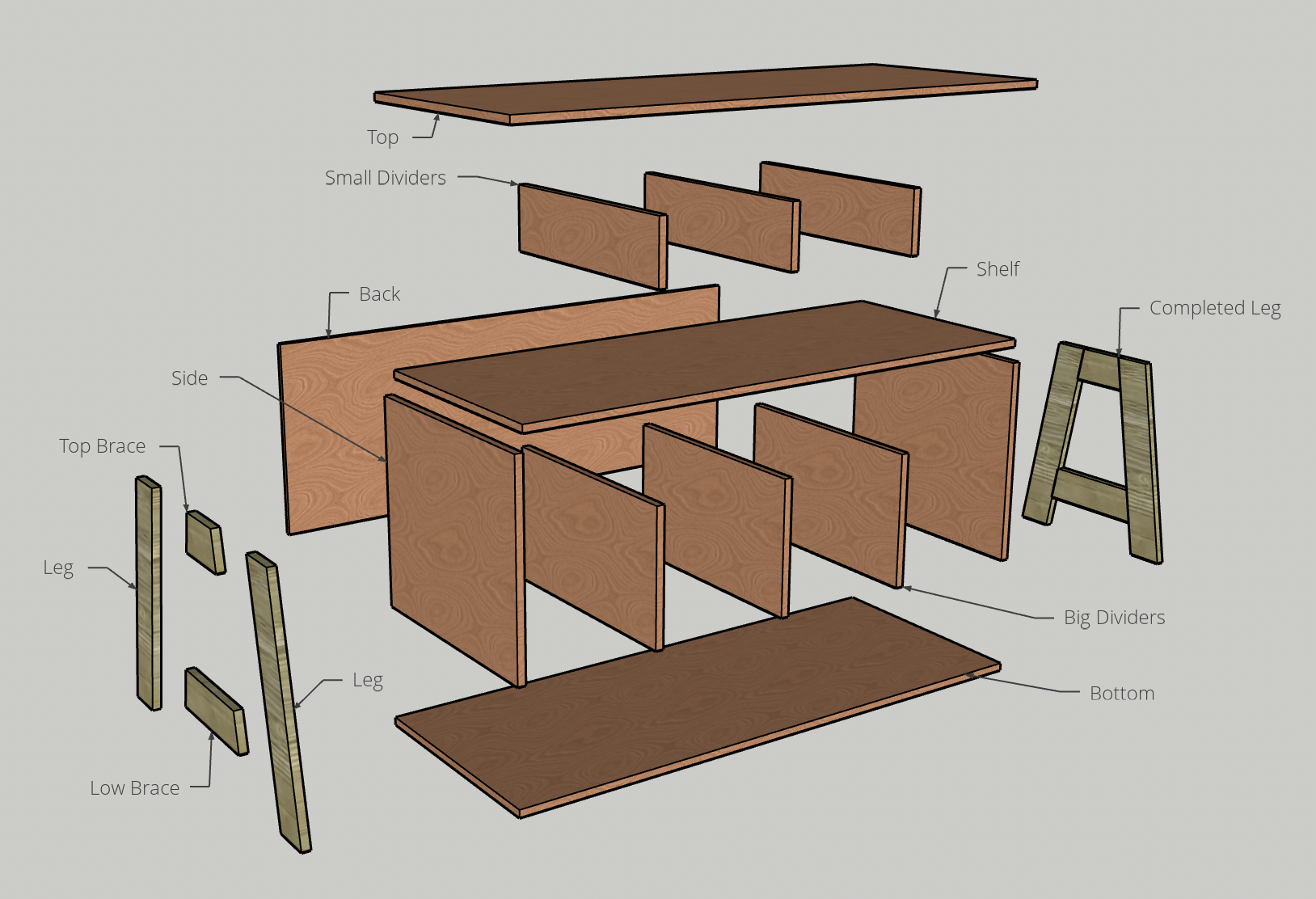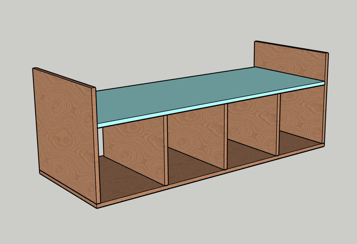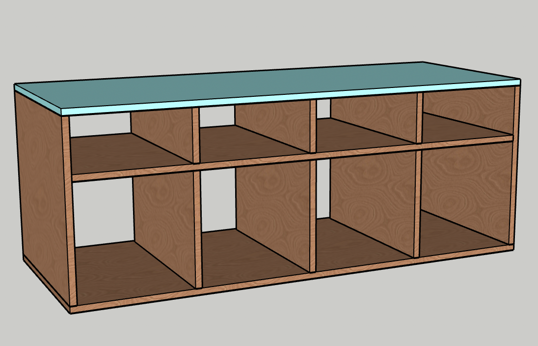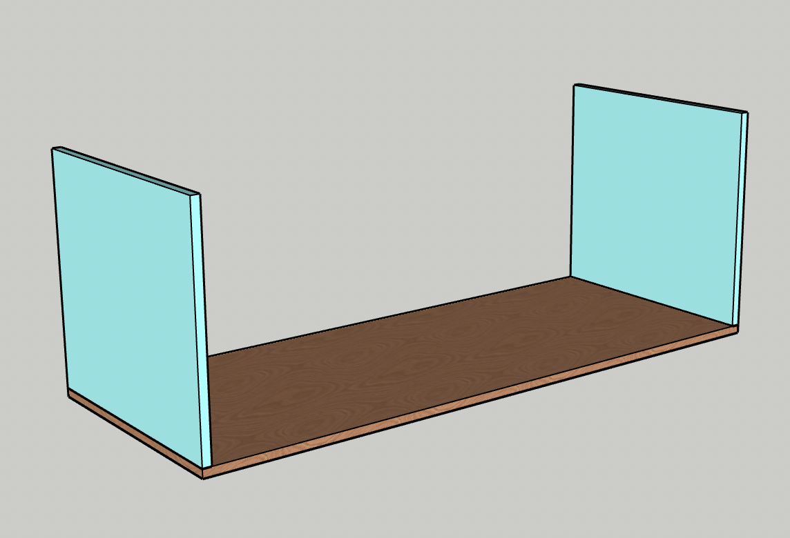 - Place the Shelf on top of the Big Dividers, between the Sides and aligned with the front edge of those pieces.