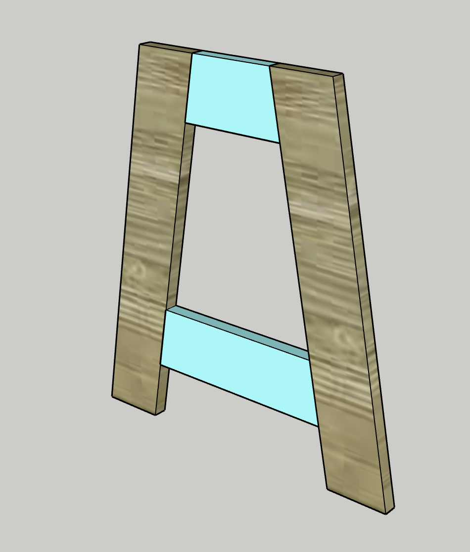 - Using wood glue and pocket hole screws, attach a Low Brace between the Legs where both edges come in contact with the Legs.
