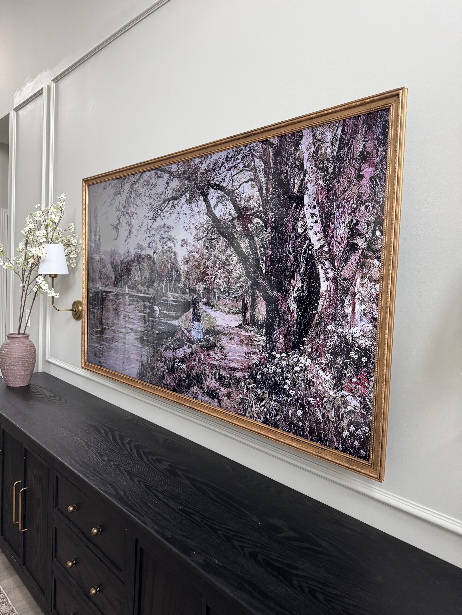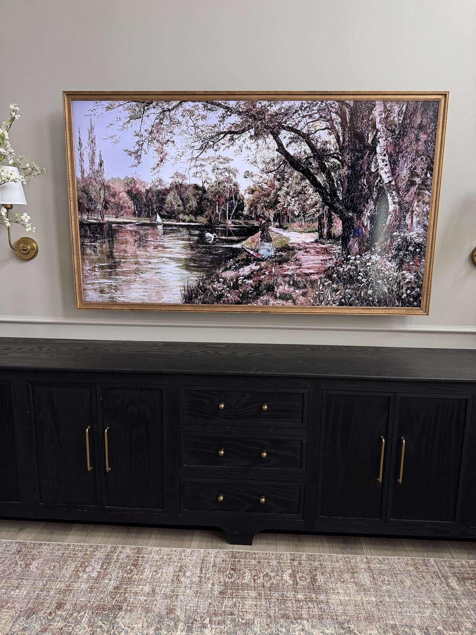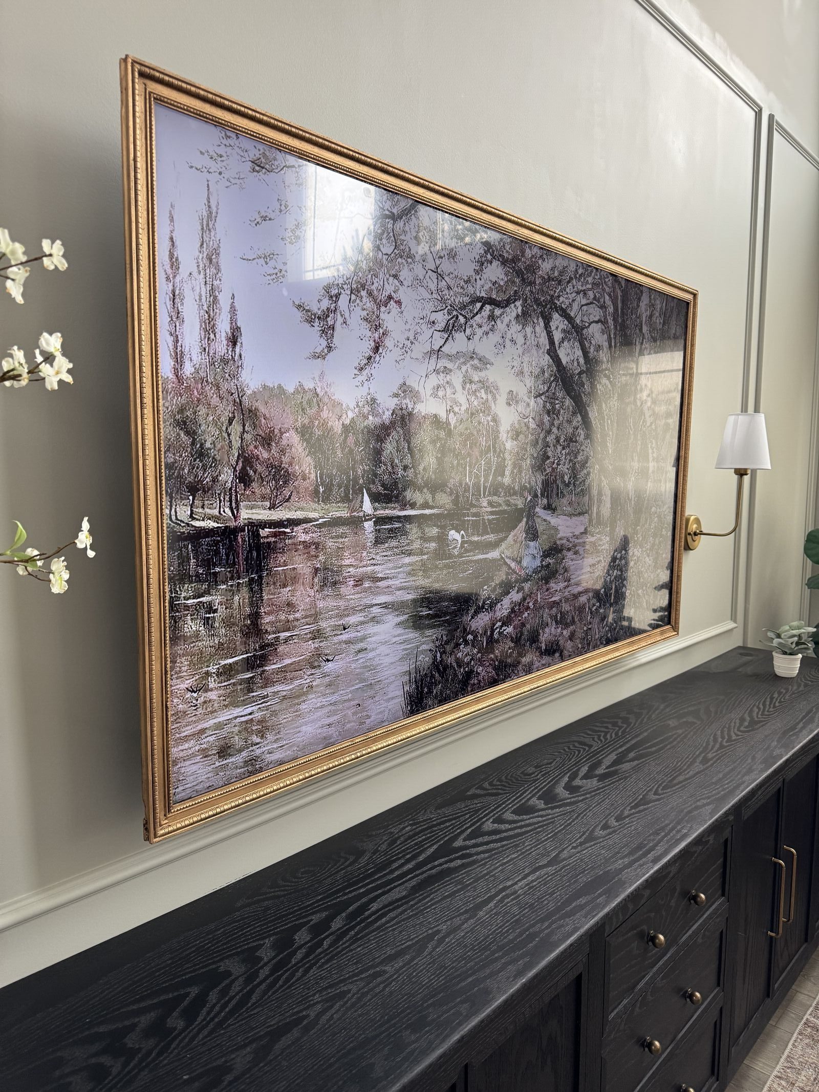 By Built by Bec DesignsThis easy tv frame is perfect for the beginner DIYer who is comfortable with a table saw. It only requires 4 pieces of trim and some elastic so its super budget friendly. This frame fits a 75" tv but I have included a way to adjust the size to fit your tv.