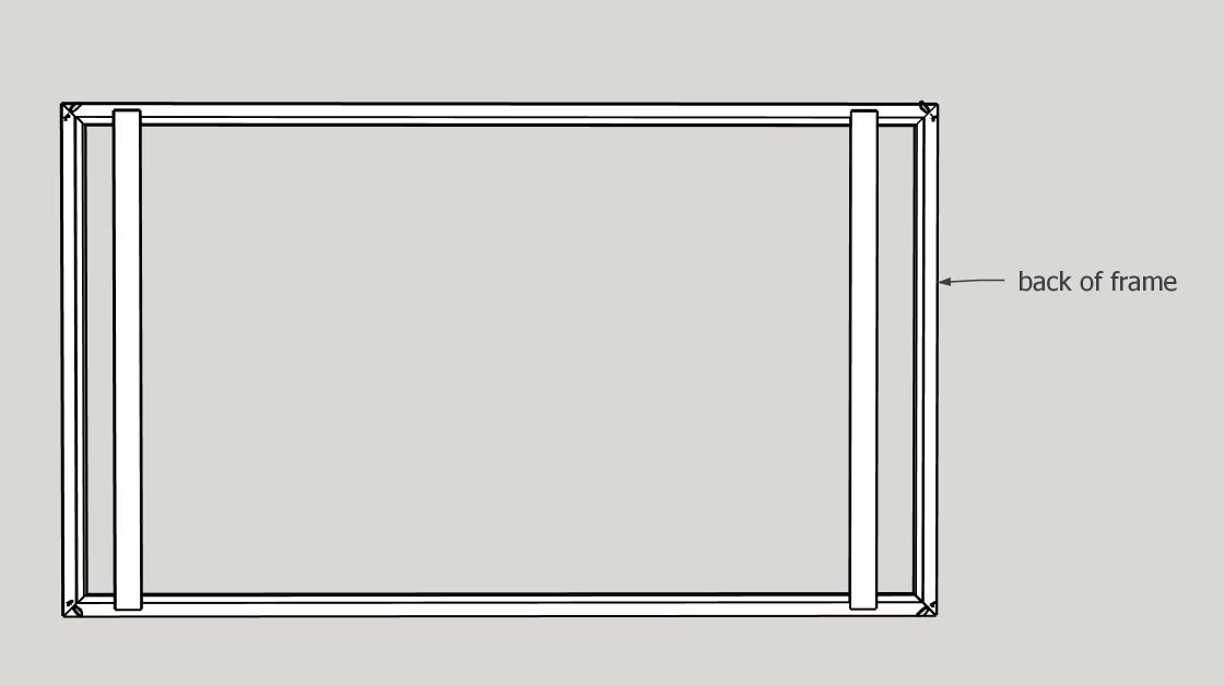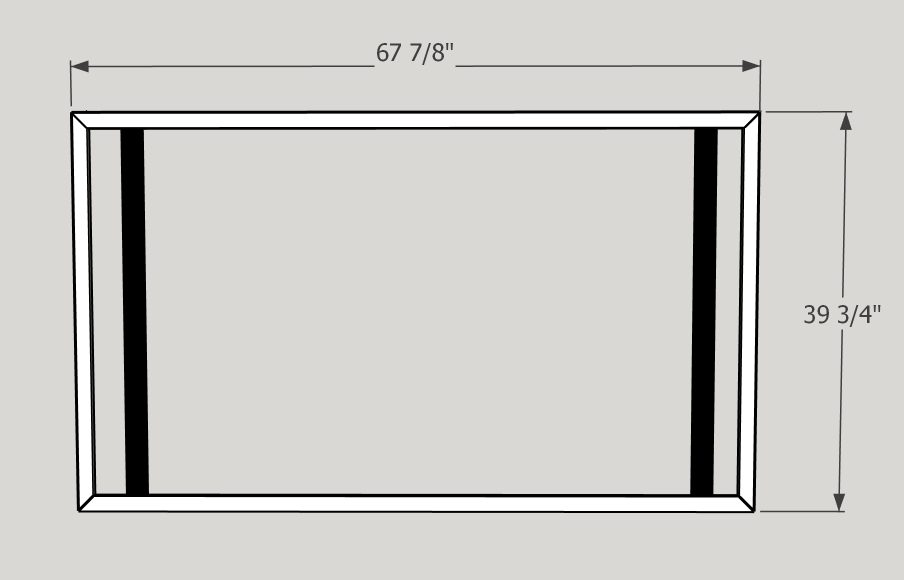 To determine the measurements for your tv first take the length of your tv + the width of your frame (1.5″ x 2) = 3 and then subtract 1″ from that number to get your length to cut the trim for the top and bottom.