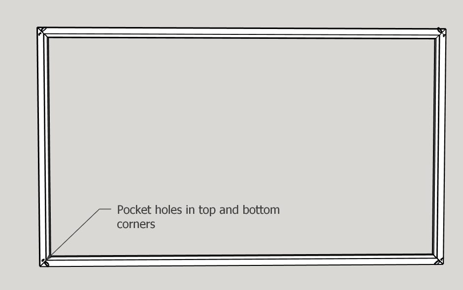 Using wood glue and 1 1/4" pocket screws, screw the frame together.