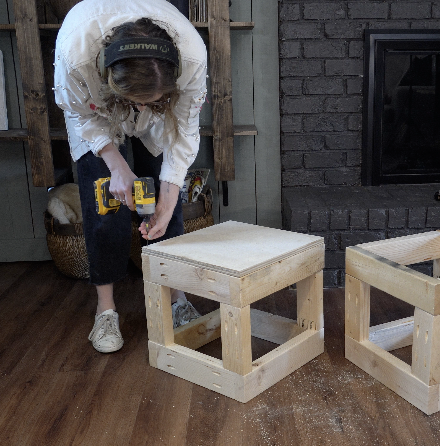 Place the 16" x 16" plywood square on top of your frame and secure it with wood screws.